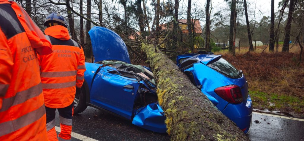 Unha moza de 22 anos resulta ferida leve tras caer unha árbore sobre o seu coche en Caldas de Reis