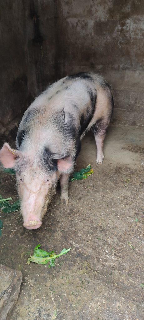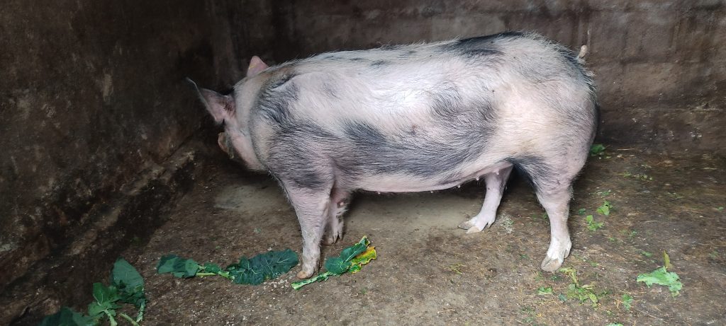 Véndese porco cebado de forma totalmente natural, con millo e productos da casa.