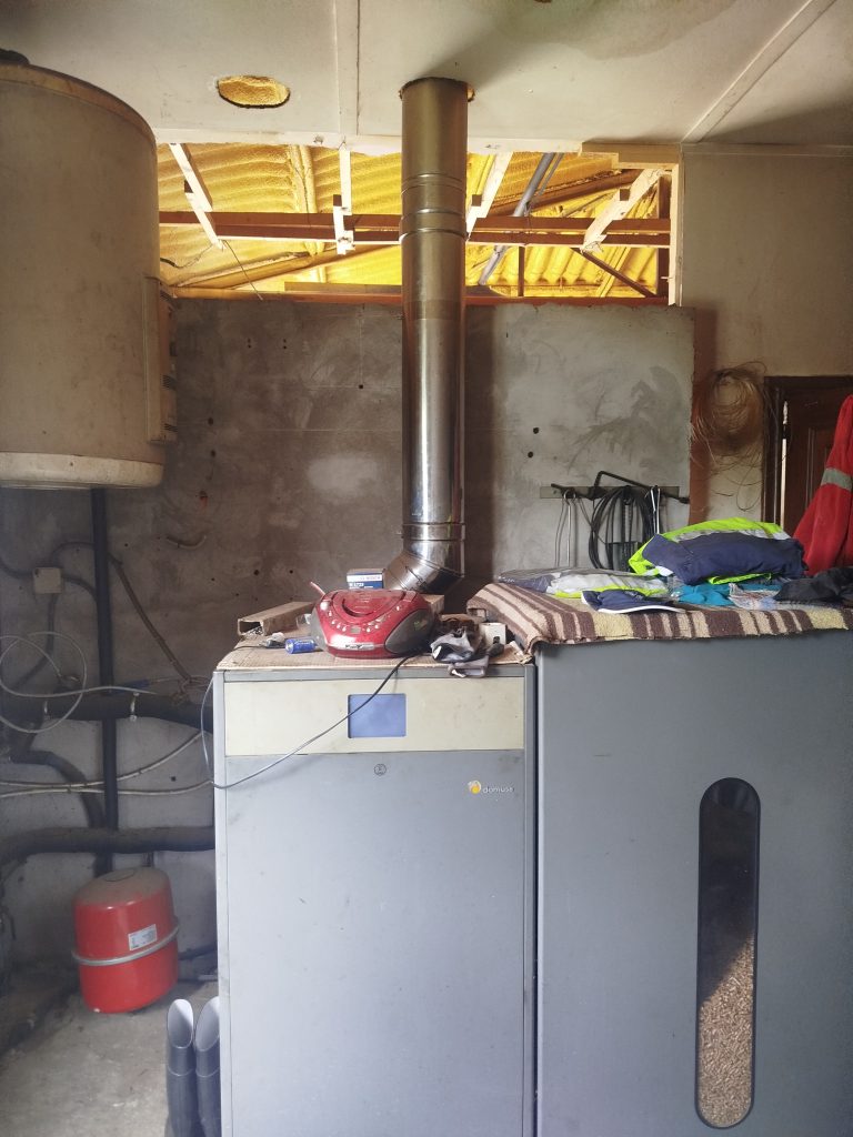 Véndese caldeira de pellets por sustitución, a bomba de calor, a caldeira e do ano 2015, con algún accesorio.